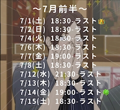 ( ‘ω’o[ブログ更新]o 閲覧ありがとうございます!わかなです🍀 7月のお給仕予定表です🎐 🎪イベント情報🎪 7/1(土):めるるちゃんバースデーEV