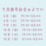 ブログ更新🐰 こんばんは☔️ らむです 最近夜更かしする癖付いちゃって起きたら17時でびっくりした՞߹ – ߹՞今日は13時間ぐらい寝たよお 圧倒的一日無駄にした感だよねえ元々夜型人間だから昼間起きてても何もすることないんだけどね🥹 夜ご飯も何も無かったから出前しようかなって思ったけど雨の中運んで来るの大変だろうなあって思って頑張ってスーパー行ってきたよ ほんとに車欲しい、限界生活すぎてむり🥲生きるのえらいねこなので褒めてください^. ̫ .^ 🌻7月前半お給仕予定表🍉