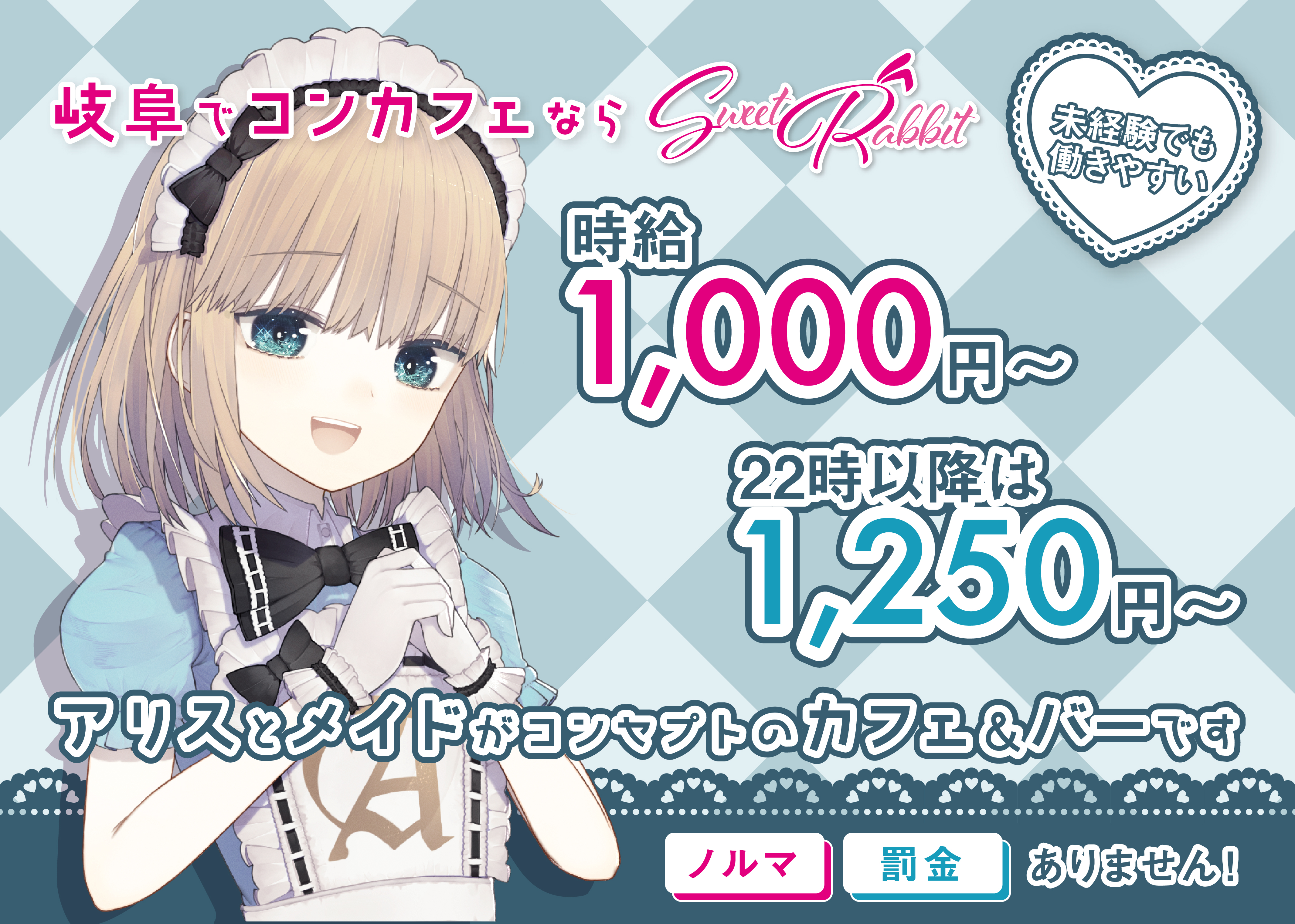 岐阜県唯一のメイドカフェ&バー「スイートラビット」は、不思議の国のアリスをテーマにしたコンセプトカフェです。柳ヶ瀬初のコンカフェで、癒しのひとときをお過ごしください。